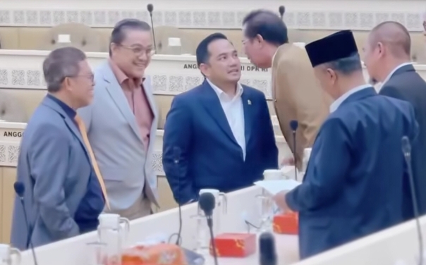 Saat perkenankan dirinya di Komisi II, Aher begitu sangat bersalaman dengan Dede Yusuf yang sempat jadi rivalnya pada Pilgub 2013. Keduanya tampak cipika cipiki. Lalu terlibat obrolan yang sesekali tertawa renyah. (adb)